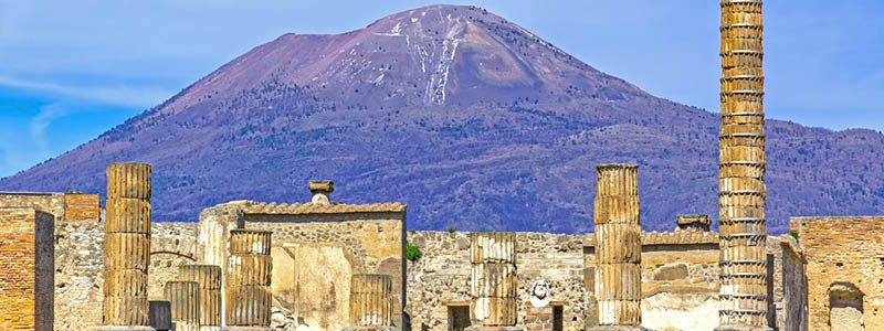Utbrottet inträffade den 24 augusti år 79 e.Kr. och räknas som ett av de mest förödande vulkanutbrotten genom historien. Den aktiva vulkanen Vesuvius, belägen just här vid Neapels bukt, hade varit vilande i flera hundra år innan detta plötsliga och förödande utbrott skulle komma att ödelägga både Pompeji och grannstaden Herculeanum. Vulkanen kastade ut enorma mängder aska, gaser och stenar i atmosfären och Pompeji begravdes under aska och stenar, vilket resulterade i att i princip hela staden bevarades i sitt grundskick.