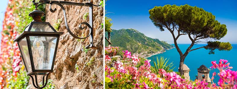 Turen tar oss till det anrika Hotel Bonadies, där vi under eftermiddagen kommer få några smakprov på lokala delikatesser i både fast och flytande form. Det vackra gamla hotellet har en magnifik terrass med utsikt över både havet och kustbyarna långt där nedanför, och vi passar på att spana in omgivningarna innan vi ger oss iväg till fots mot Ravellos centrum. Under den cirka 600 meter långa promenaden in till stadskärnan passerar vi vackra vyer över de välkända femstjärniga lyxhotellen som attraherar celebriteter från hela världen.