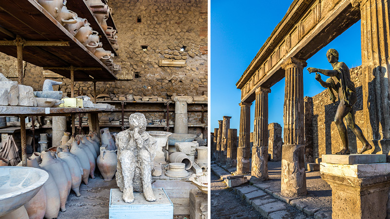 Pompeji förblev begravt i flera århundraden innan det återupptäcktes under 1700-talets arkeologiska utgrävningar. Utgrävningarna har varit avgörande i att ge oss en unik inblick i både det romerska vardagslivet och dess arkitektur. En annan aspekt av vulkanutbrottet var att det dramatiskt förändrade landskapet kring Vesuvius. De vulkaniska resterna har skapat en bördig mark som har varit oerhört fördelaktig för jordbruket, vilket gör området runt vulkanen till en fruktbar region med sina särskilda kulinariska specialiteter. Här odlas bland annat de välkända San Marzano-tomaterna, som ofta utgör grunden för en riktigt god italiensk pizza, och även kastanjer, olivträd och frukt & grönt. Dessutom finns det särskilda vinet Lacryma Christi, som direktöversatt betyder Kristi tårar. De gröna och röda druvorna som används till att framställa vinet odlas här i den vulkaniska jorden, vilket ger en särskild smak åt det populära vinet.